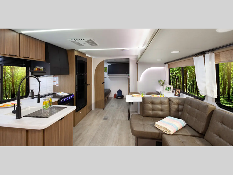 You will find a wide range of floorplans available so you should easily find one that fits your needs and lifestyle. Get a good night's rest on the comfortable beds and keep your bellies full with the fully equipped kitchens. The aerodynamic front radius profile helps make towing easier than ever, and the powder coated I-beam frame adds durability.