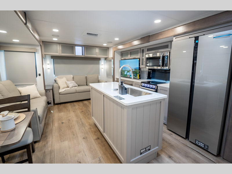 Azdel composite sidewalls are throughout the inside and out to provide you with an RV made to last. The flush slide out floors prevent tripping, and the interior is carpet-free for an easier clean. You will also appreciate industry leading tank sizes, performance running gear, and an OTG Solar Package that will allow you to go off-grid when the adventure calls for it.