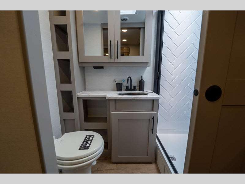 Sleeps 2 Slides 1 Length 23 ft 11 in Ext Height 10 ft 10 in Hitch Weight 568 lbs GVWR 7450 lbs Dry Weight 4992 lbs Fresh Water Capacity 45 gals Grey Water Capacity 45 gals Black Water Capacity 45 gals Available Beds Queen Refrigerator Type 12V Refrigerator Size 10 cu ft Cooktop Burners 3 Shower Size 32" Number of Awnings 1 Water Heater Type On Demand Tankless Awning Info 15' Axle Count 2 Shower Type Radius Solar Wattage 200 watts Similar Floorplans