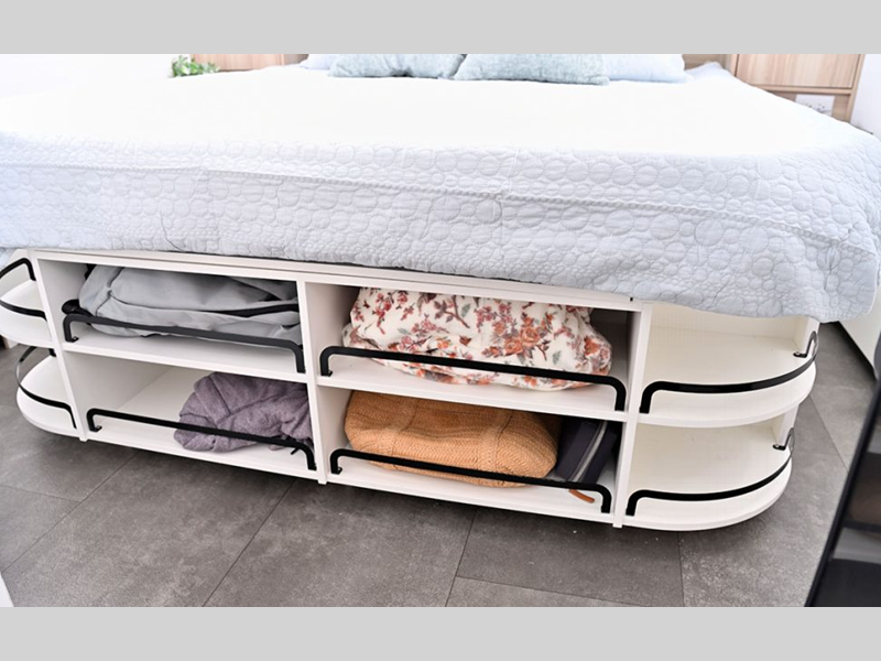 nuCamp RV Haven travel trailer 220 Queen Bed highlights: Full Rear Bath Front ... more about Haven 220 Queen Bed